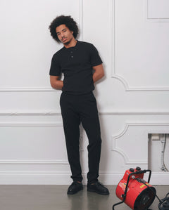 BLACK SQUARE NECK HENLEY T-SHIRT