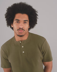 OLIVE SQUARE NECK HENLEY T-SHIRT